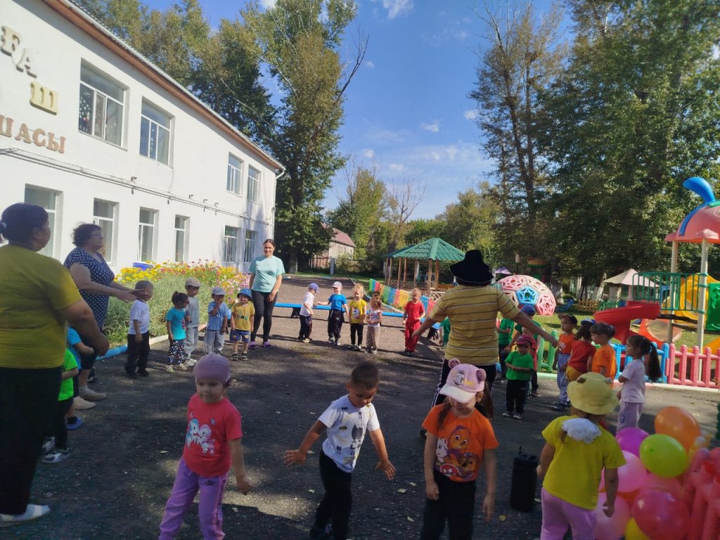 Жазмен қоштасу көңілді және ұмытылмас болды! Балаларға сүйікті данно кейіпкері келді. Ол балаларды бірден көңілді ойындар, эстафеталар мен қызықты жарыстар әлеміне тартты. Балалар спорттық жарыстарға қуана қатысты, ептілік, тапқырлық және командалық рух көрсетті.