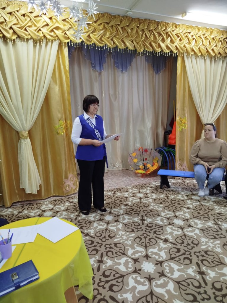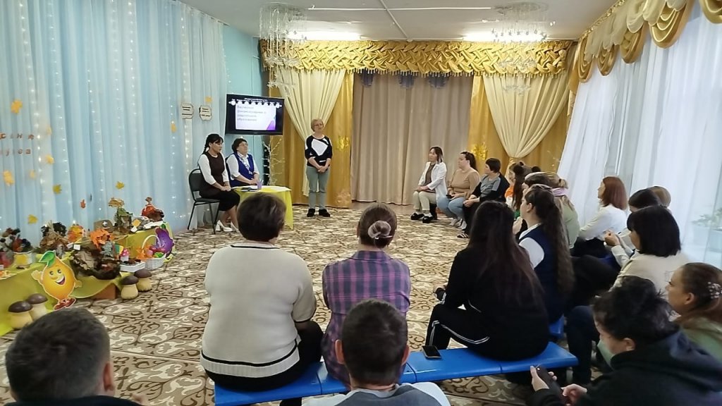 1. Ата-аналар педагогикалық ұжыммен және меңгерушінің міндетін атқарушы М.Дүйсенбаевамен танысты, ол мекеме жұмысының басымдықтары мен өзара іс — қимылға ашықтығын белгіледі.