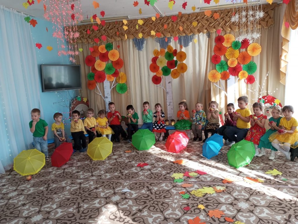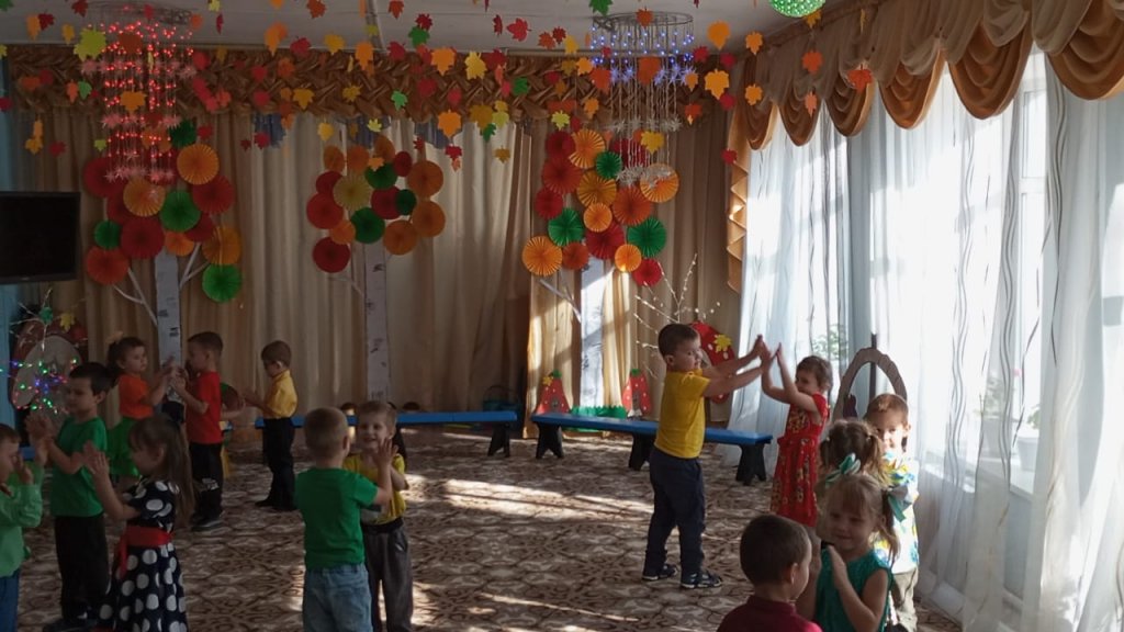 Әр топ балалардың жас ерекшеліктеріне сәйкес тақырыптық мереке дайындады. Музыка залы күзгі тақырыпта әдемі безендірілген.
