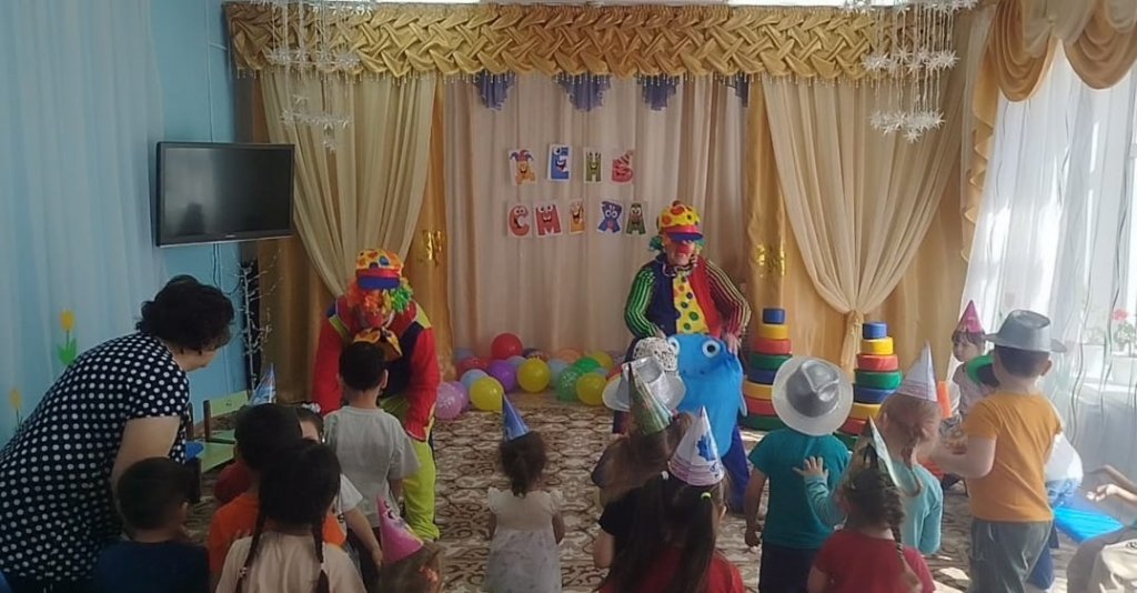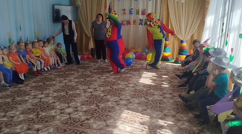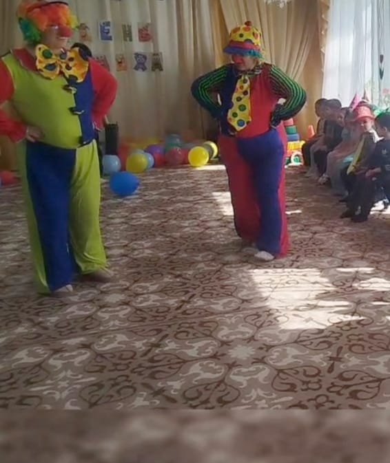 Балаларға күлкі, әзілдер мен көңілді тосын сыйлар сыйлаған екі күлкілі клоун бізге қонаққа келді